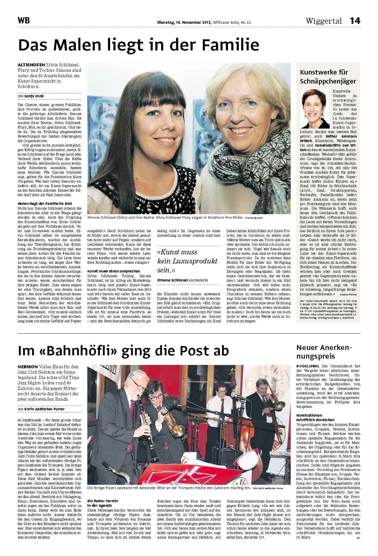Artikel im Willisauer Bote 'Kunstwerke für Schnäppchenjäger', 19.11.2013